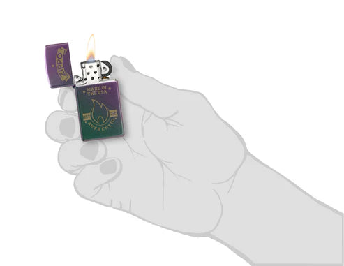 Este encendedor Slim® Iridiscente presenta un diseño clásico de Zippo grabado a láser , que revela llamativos tonos latón bajo su fascinante acabado. Se presenta en una caja de regalo. Para un rendimiento óptimo, llénelo con combustible para encendedores Zippo.
