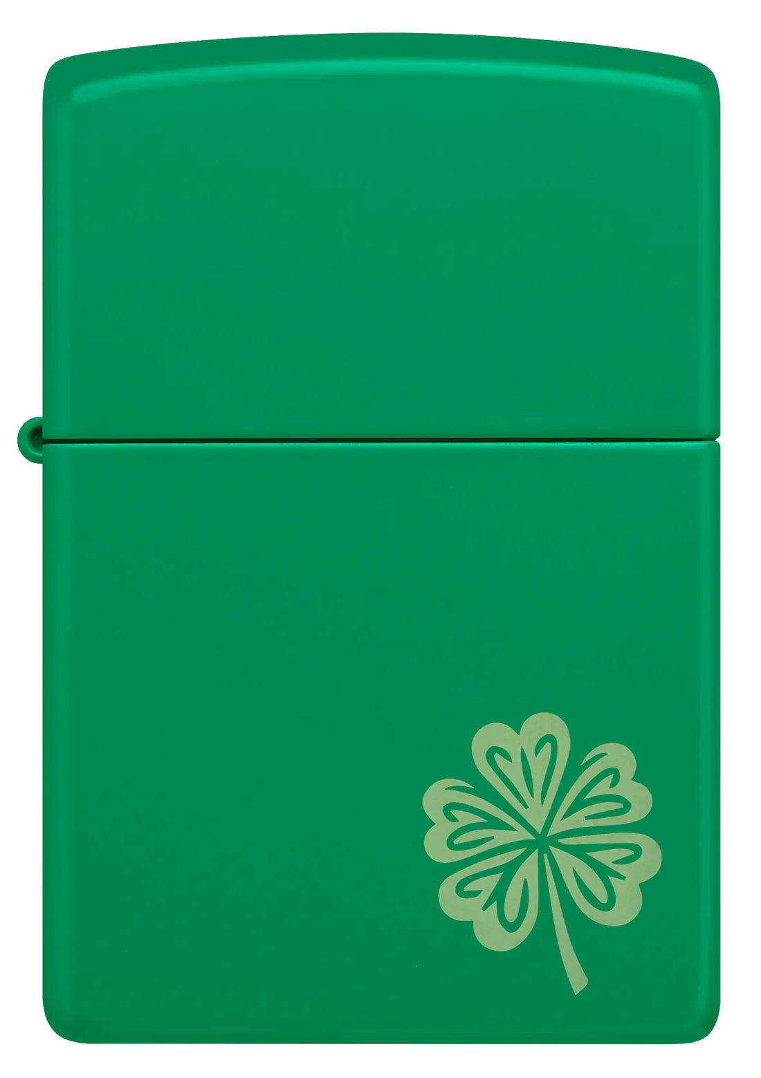 Este brillante y alegre encendedor Verde Hierba Mate aporta buena suerte a cualquier colección con un sencillo trébol de cuatro hojas grabado a láser en la superficie frontal. Se presenta en una caja de regalo. Para un rendimiento óptimo, llénelo con gasolina para encendedores Zippo.